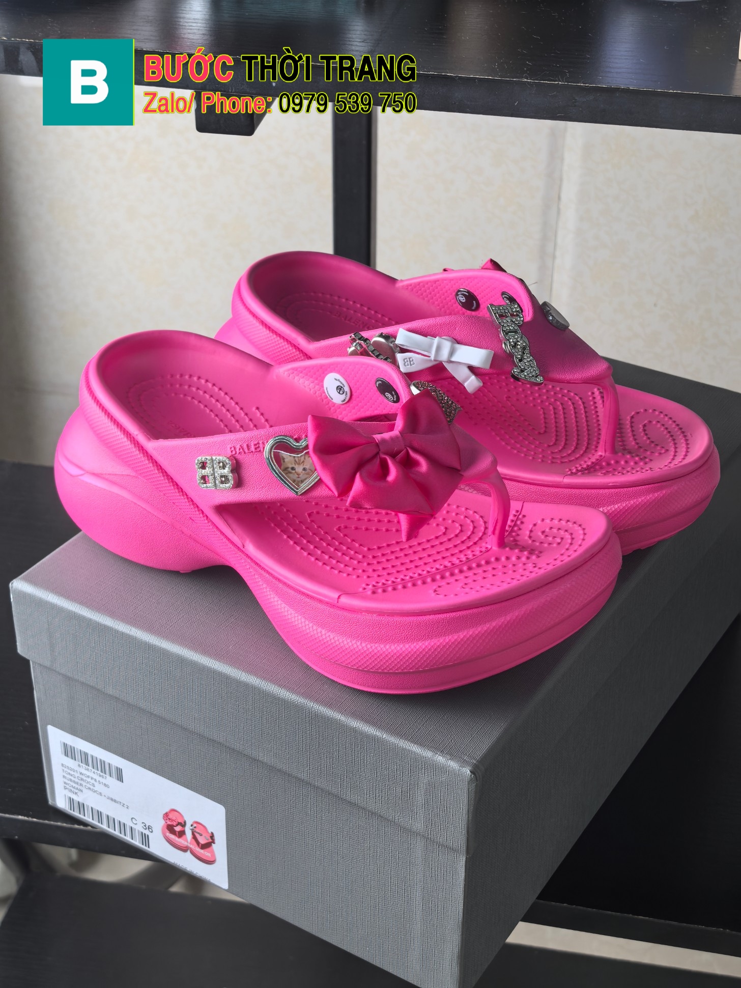Dép xỏ ngón BALENCIAGA màu hồng đậm cao cấp đế eva cao su nguyên khối cao 6cm siêu nhẹ tôn dáng