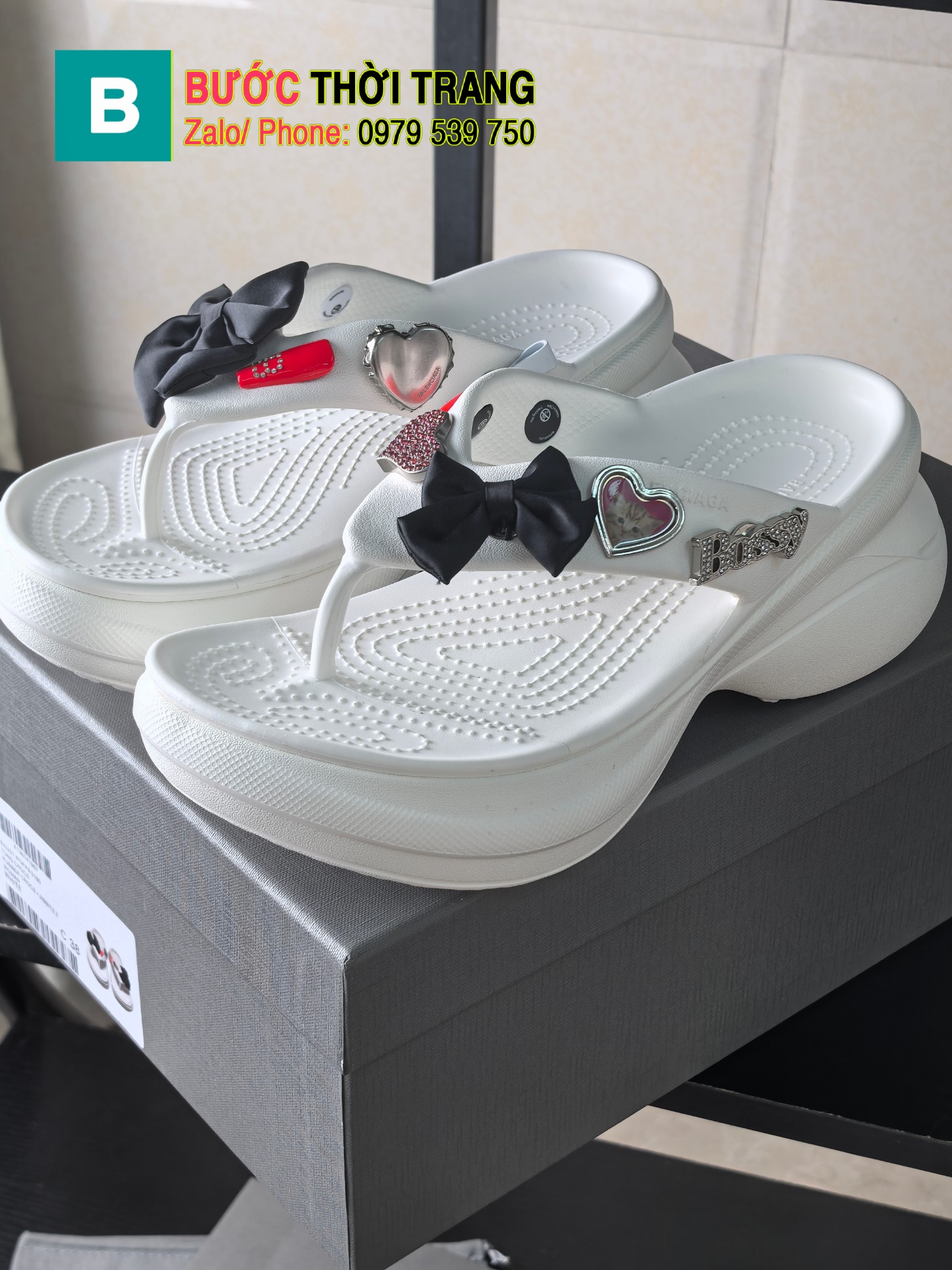 Dép xỏ ngón BALENCIAGA màu trắngcao cấp đế eva cao su nguyên khối cao 6cm siêu nhẹ tôn dáng