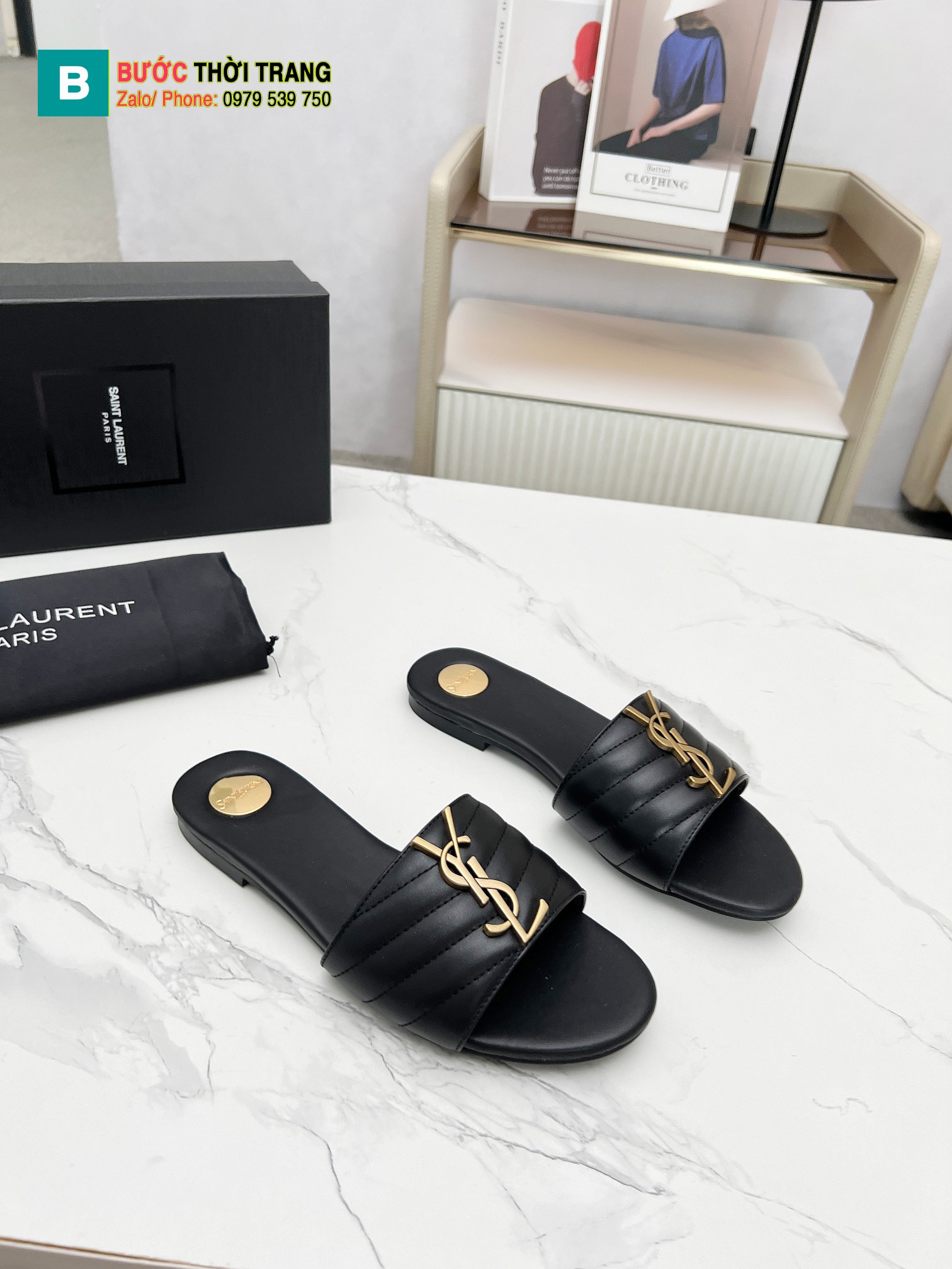 Dép YSL nữ đế bệt màu đen ngà logo đính nổi bật Hàng order 10-15 ngày (Cọc trước 500K)