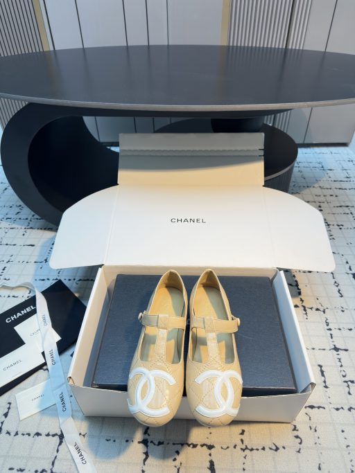 Giày búp bê Chanel cao cấp màu be logo nổi bật chất da mềm mịn
