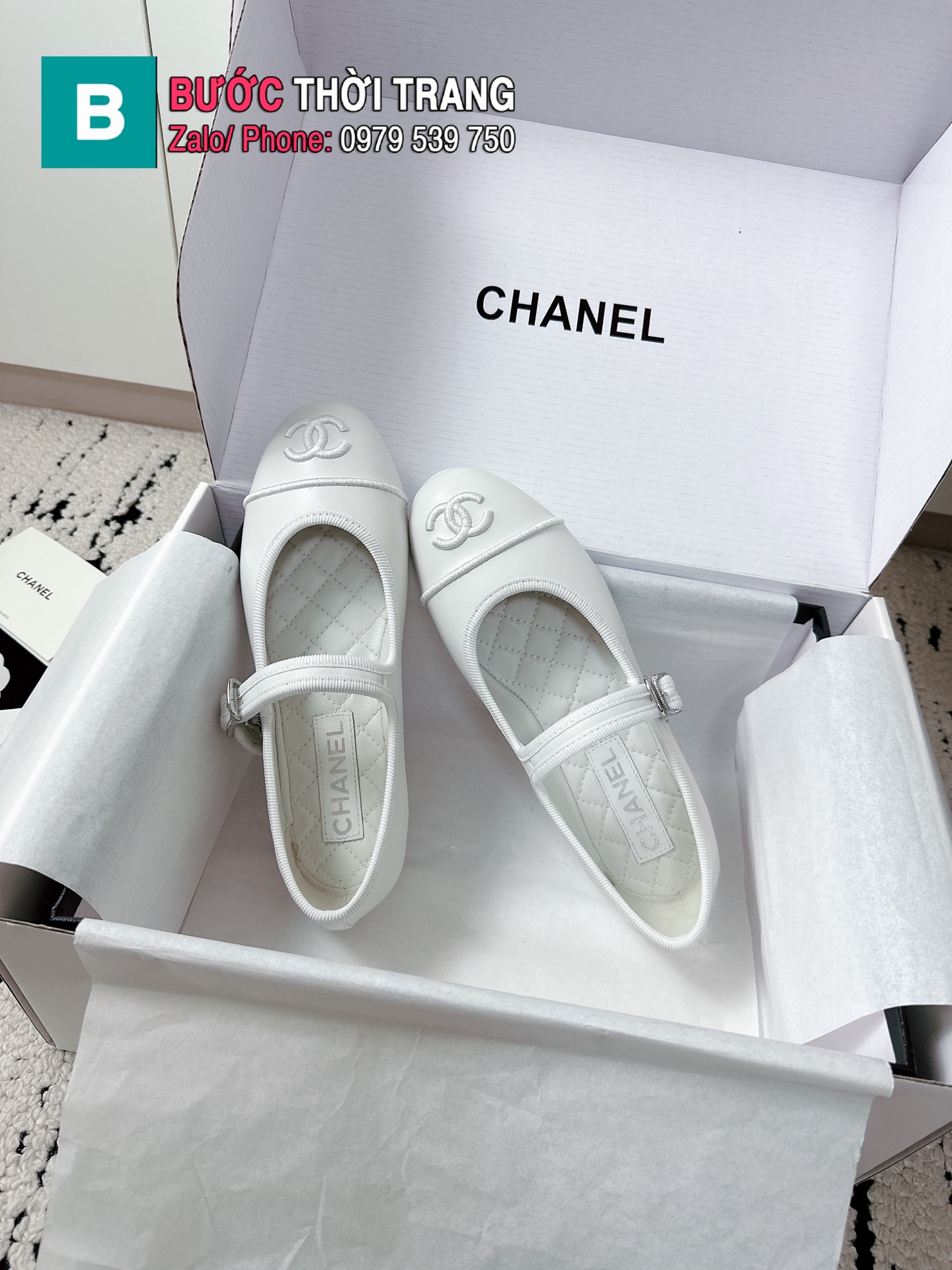 Giày búp bê đế bệt CN màu trắng quai ngang mẫu giày kinh điển tuyệt đẹp