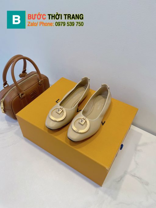 Giày búp bê LV màu be chất da bò dẻo xịn logo đính đẹp mắt