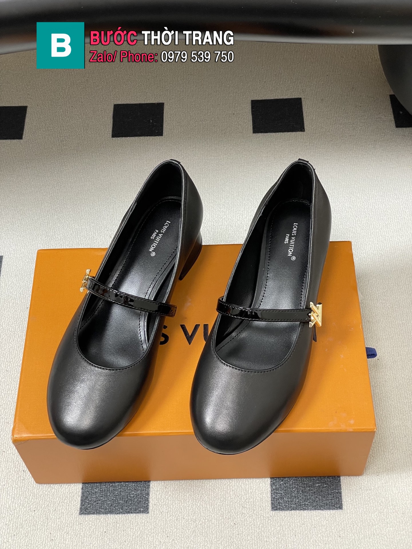 Giày búp bê LV màu đen da bò mềm mịn cao cấp đế cao 3.5cm