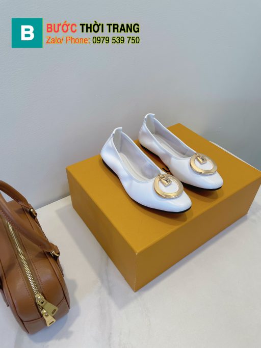 Giày búp bê LV màu trắng ngà chất da bò dẻo xịn logo đính đẹp mắt