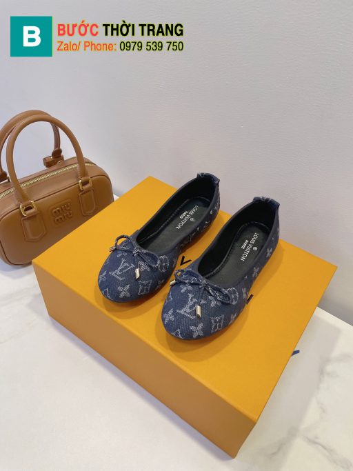 Giày búp bê LV màu xanh đậm đế bệt họa tiết monogram bắt mắt