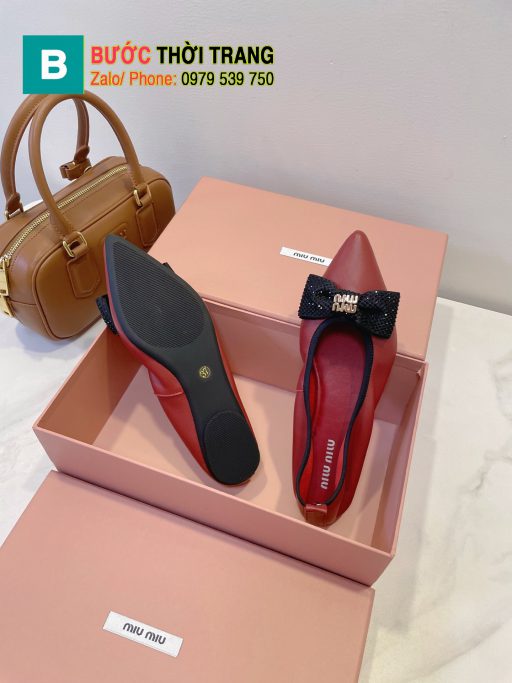 Giày búp bê Miu miu màu đỏ đô nhạt chất da bò dẻo xịn họa tiết nơ logo đính đẹp mắt