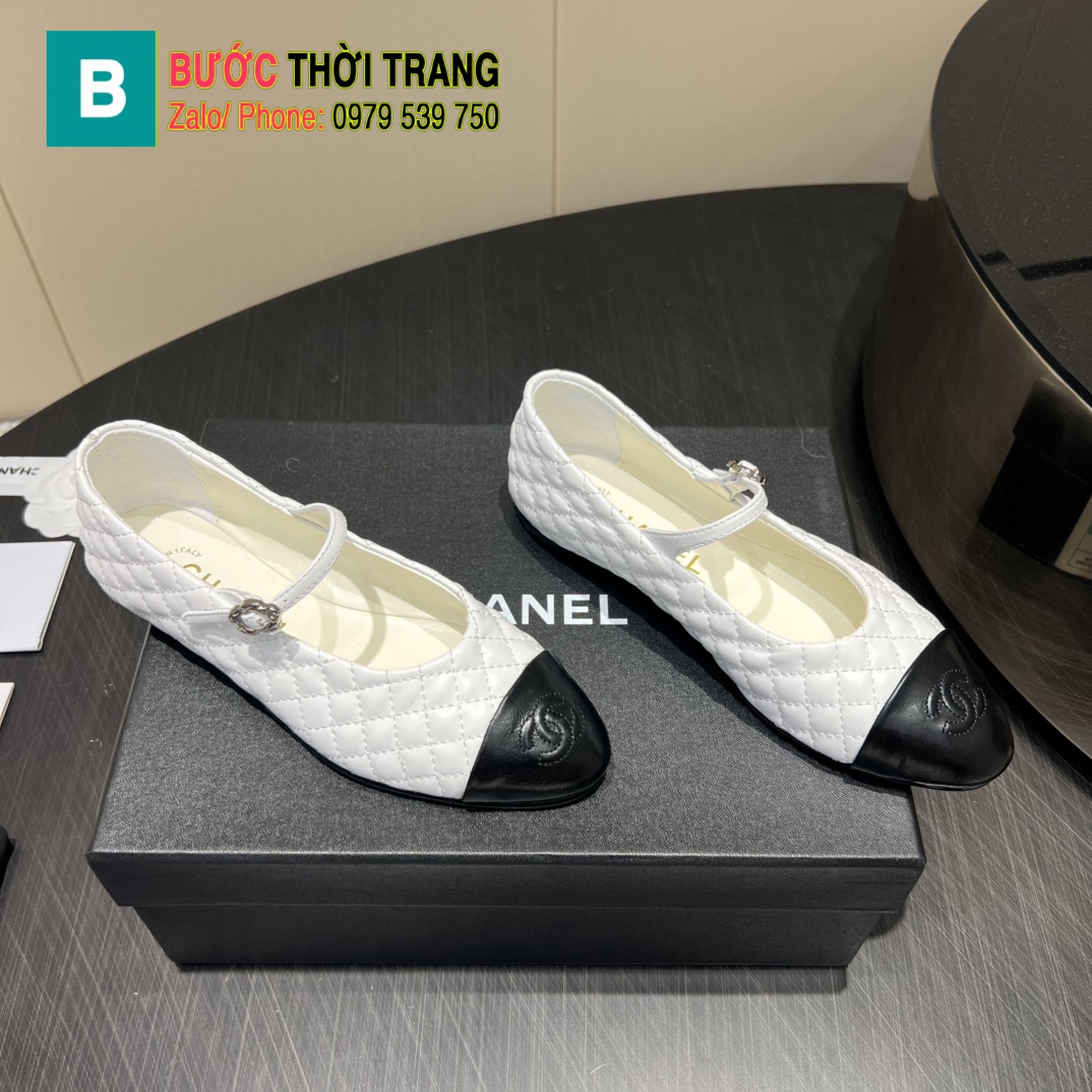 Giày búp bê nữ Chanel màu đen siêu cấp da bò mềm mịn họa tiết ô trám bắt mắt