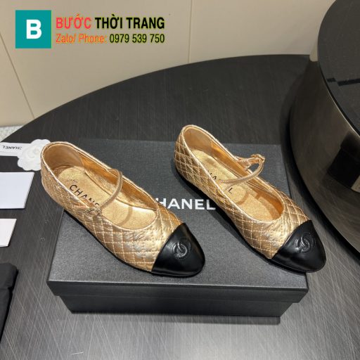 Giày búp bê nữ Chanel màu vàng siêu cấp da bò mềm mịn họa tiết ô trám bắt mắt