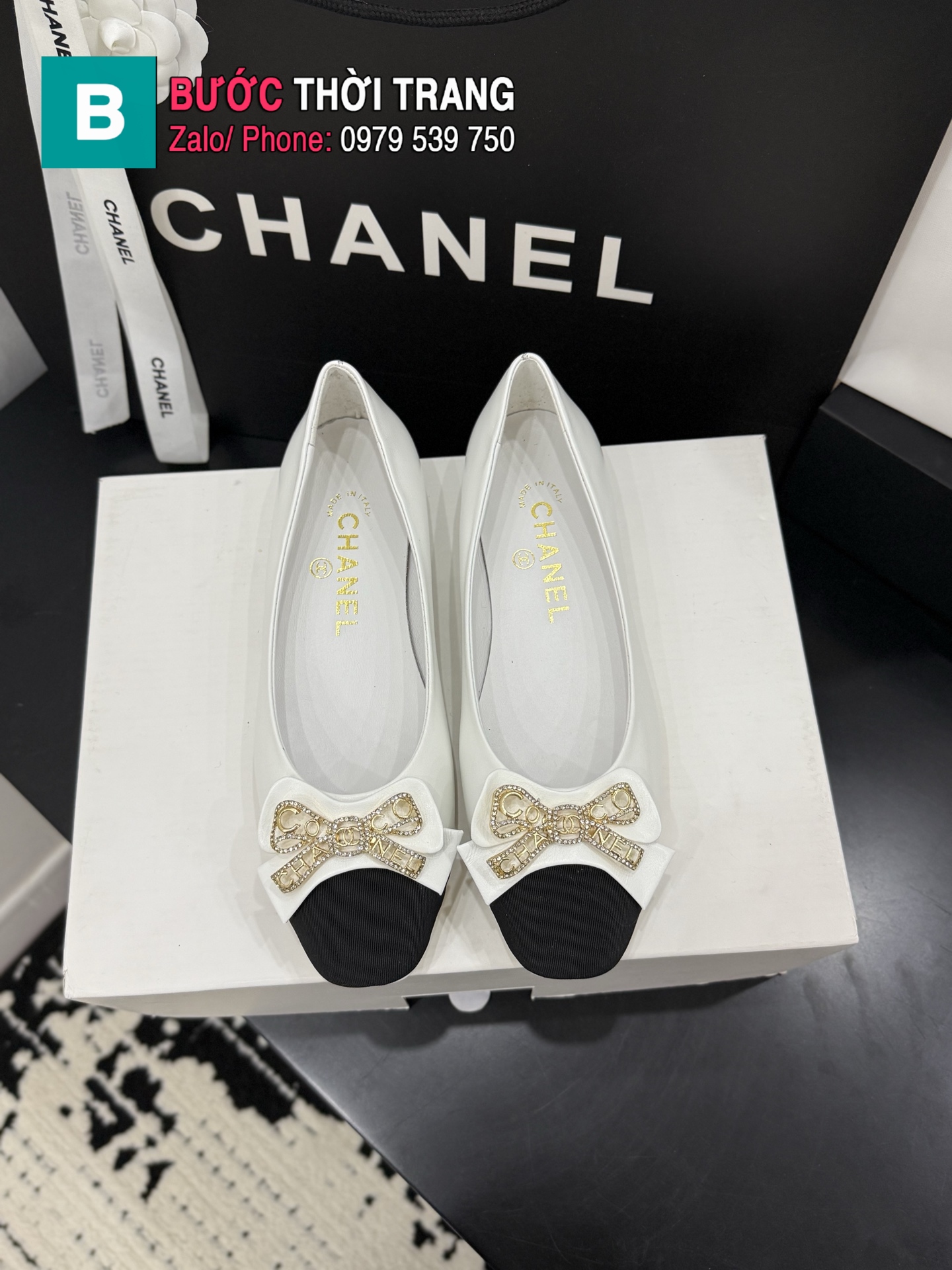 Giày búp bê nữ CN màu trắng đính nơ mẫu giày đi cùng năm tháng