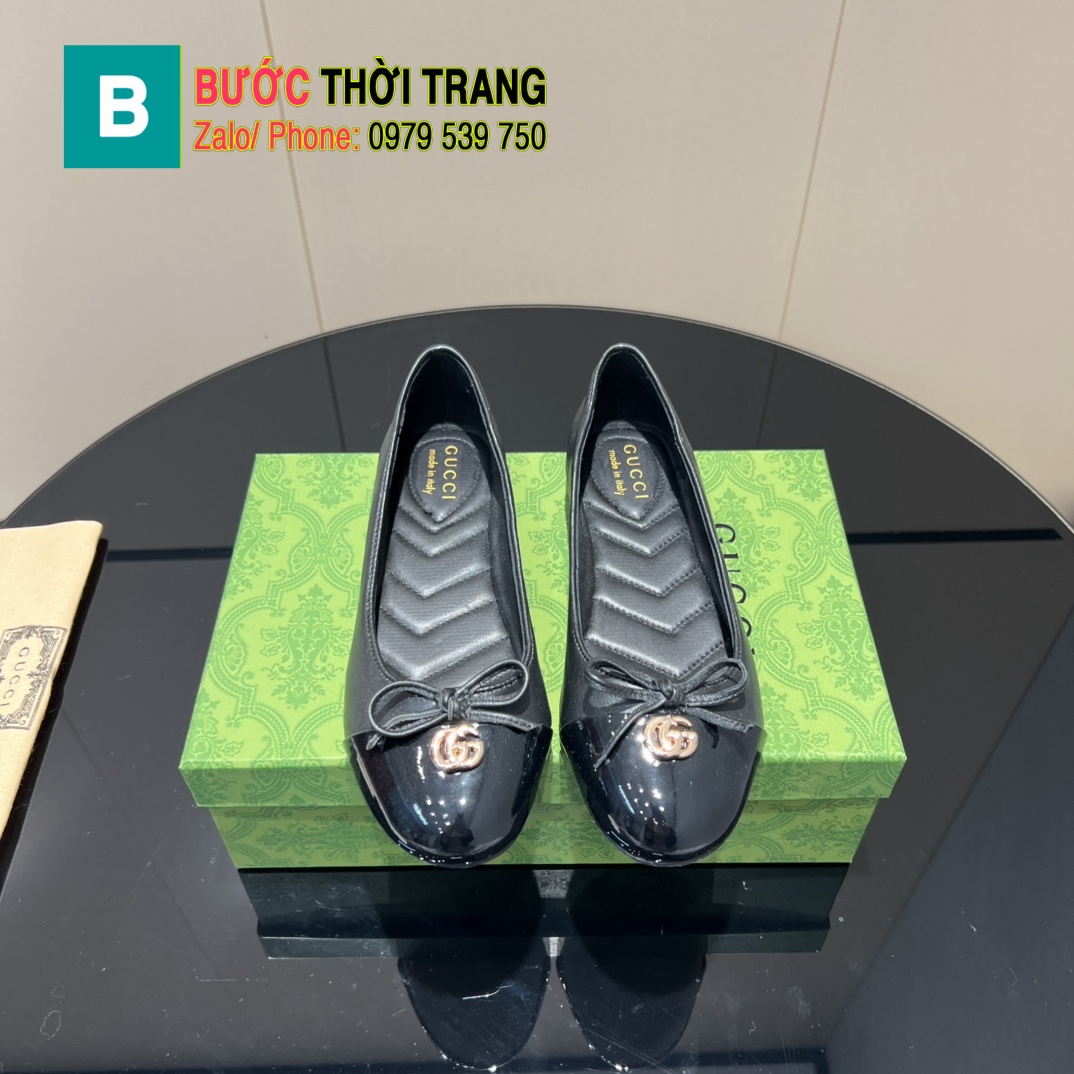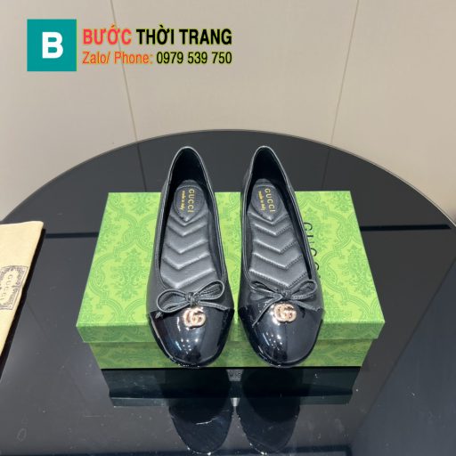 Giày búp bê nữ Gucci màu đen siêu cấp đế bệt vân chữ V chất liệu da bò bền bỉ