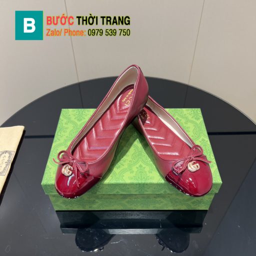 Giày búp bê nữ Gucci màu đỏ đô siêu cấp đế bệt vân chữ V chất liệu da bò bền bỉ