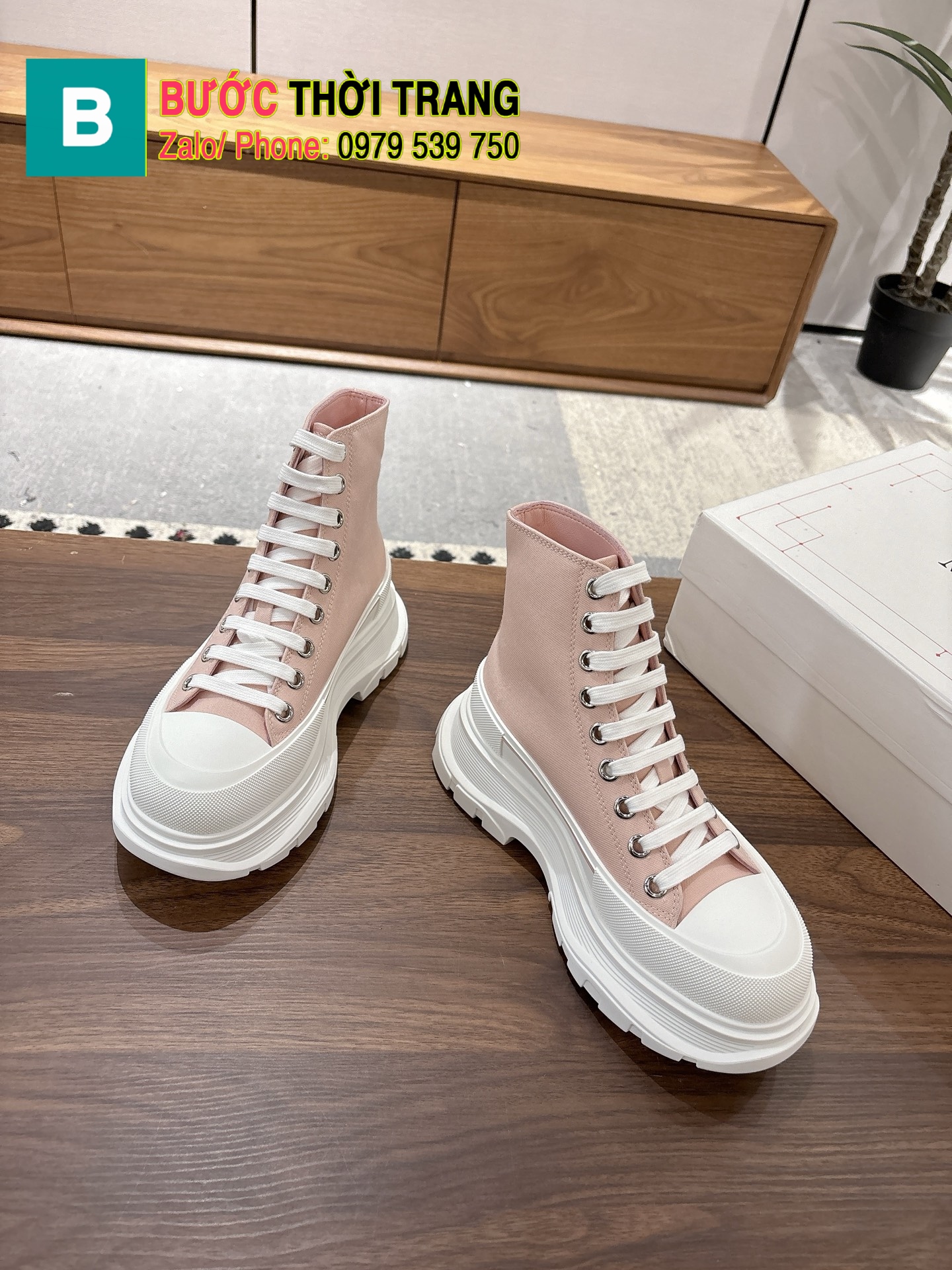 Giày cao cổ Alexander McQueen đế cao 5cm màu hồng nhạt bằng vải đế da