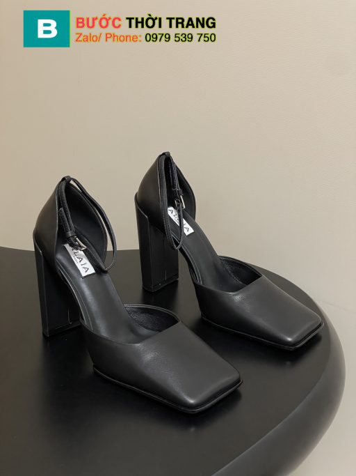 Giày cao gót ALAIA màu đen mũi vuông sang trọng, đế cao 10 cm
