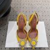 Giày cao gót Amina Muaddi chất lụa mũi nhọn màu bạc cao 9.5 cm