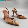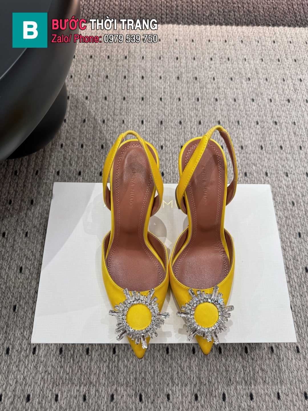Giày cao gót Amina Muaddi chất lụa mũi nhọn màu vàng cao 9.5 cm