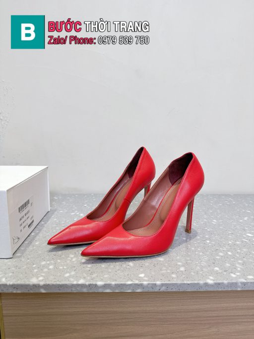 Giày cao gót Amina Muaddi mũi nhọn màu đỏ da bóng
