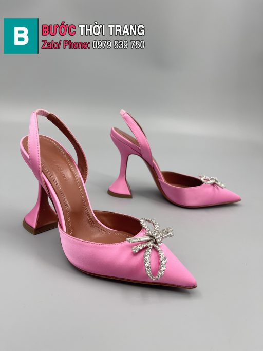 Giày cao gót Amina Muaddi mũi nhọn màu hồng nhẹ cao 9.5 cm
