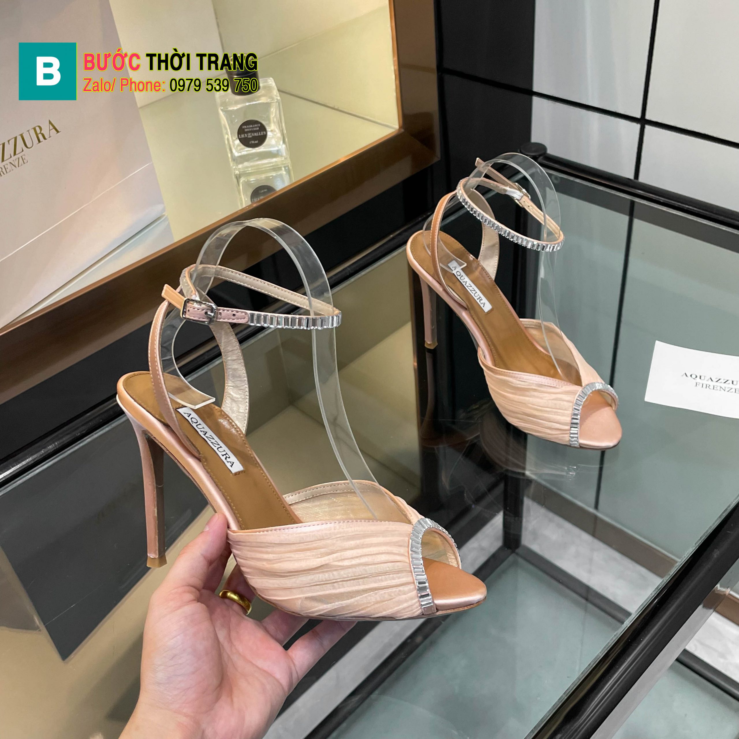 Giày cao gót Aquazzura siêu cấp màu be đính ngọc lấp lánh đế mảnh tôn dáng cao 10,5cm
