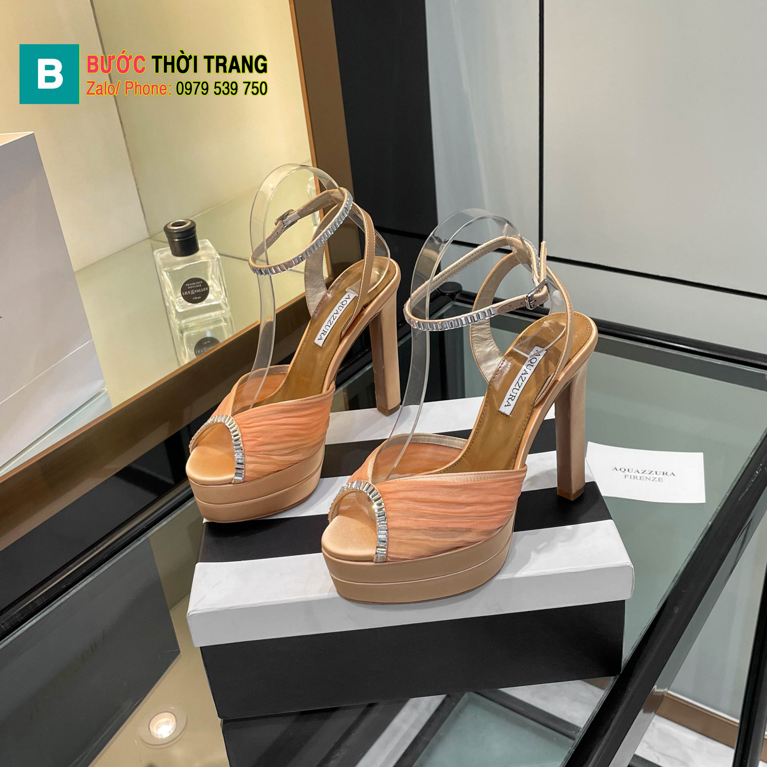 Giày cao gót Aquazzura siêu cấp màu nude đính ngọc lấp lánh đế nhỏ tôn dáng cao 13,5cm