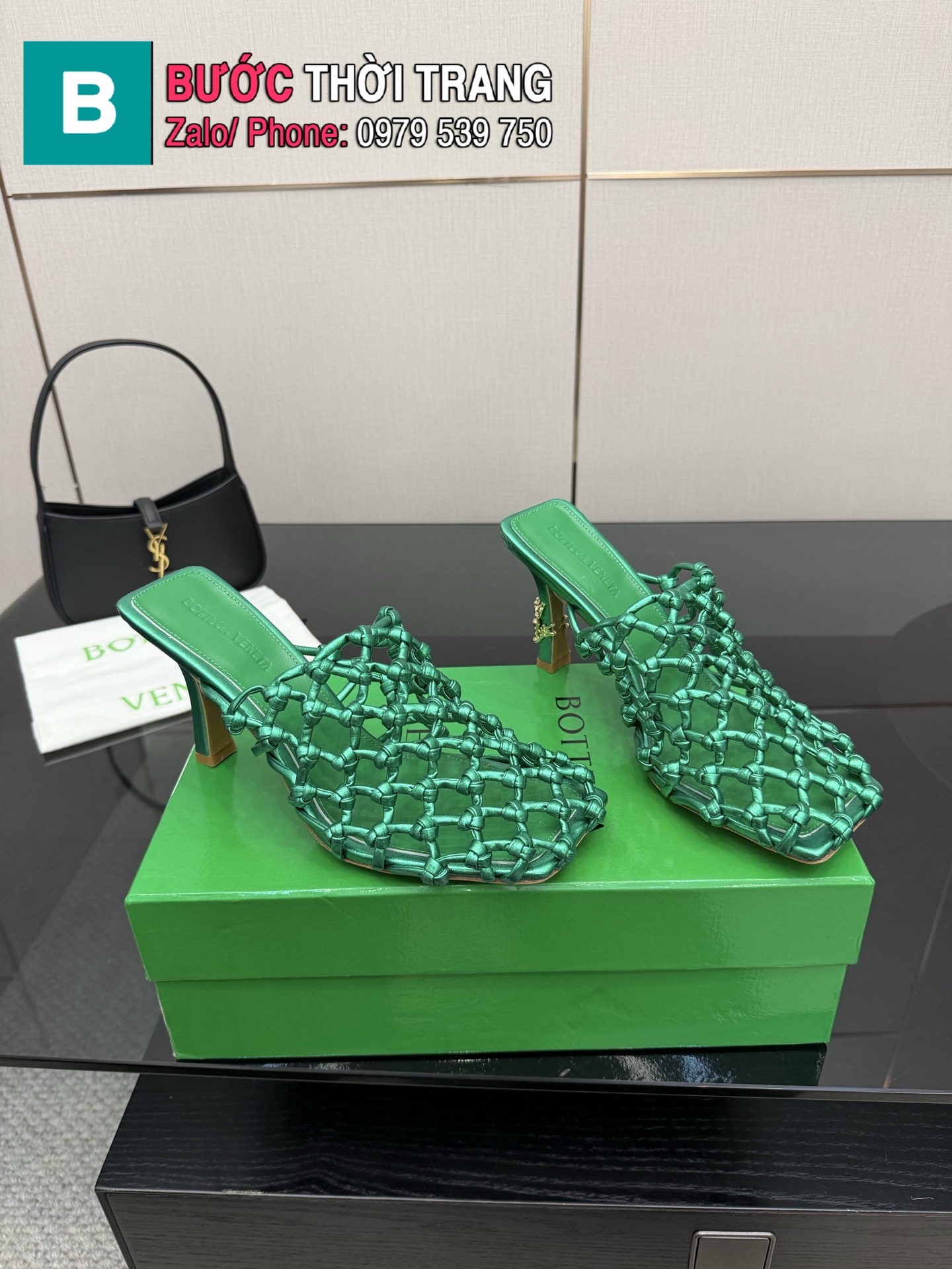 Giày cao gót Bottega Veneta mũi vuông đan sợi màu xanh lá cao 9cm