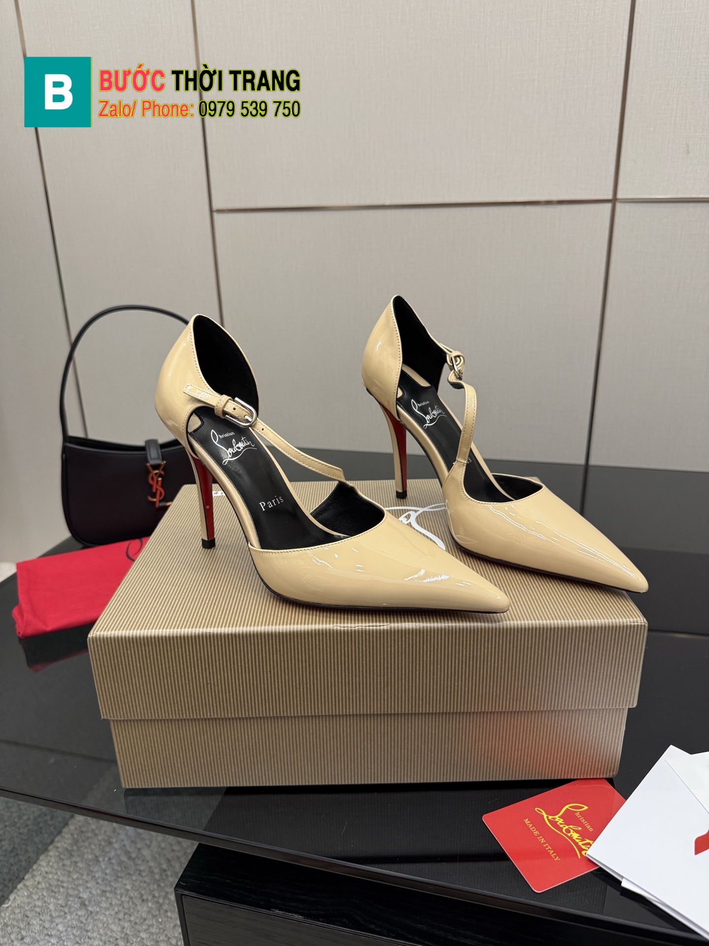Giày cao gót Christian Louboutin cao cấp màu be da bóng đế đỏ bắt mắt