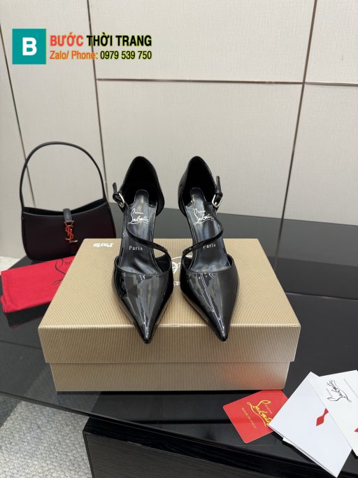 Dép cao gót Christian Louboutin màu đen da bóng cao cấp mũi nhọn cao 10cm