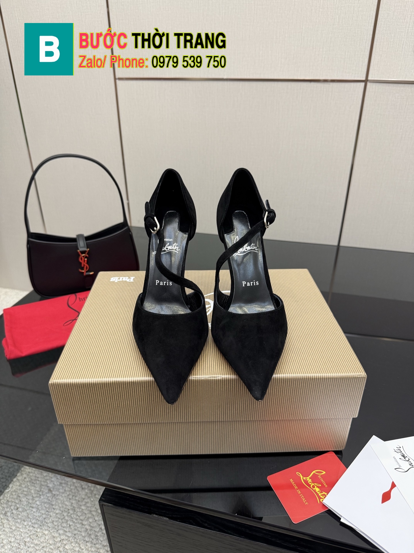 Giày cao gót Christian Louboutin cao cấp màu đen da lộn đế đỏ bắt mắt