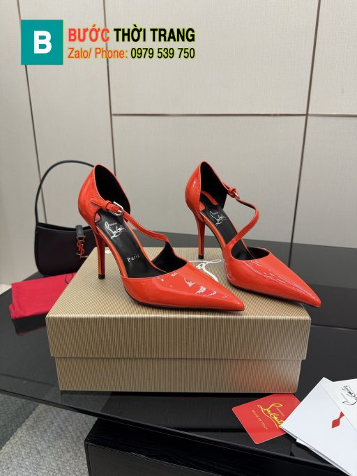 Giày cao gót Christian Louboutin cao cấp màu đỏ cam da bóng đế đỏ bắt mắt
