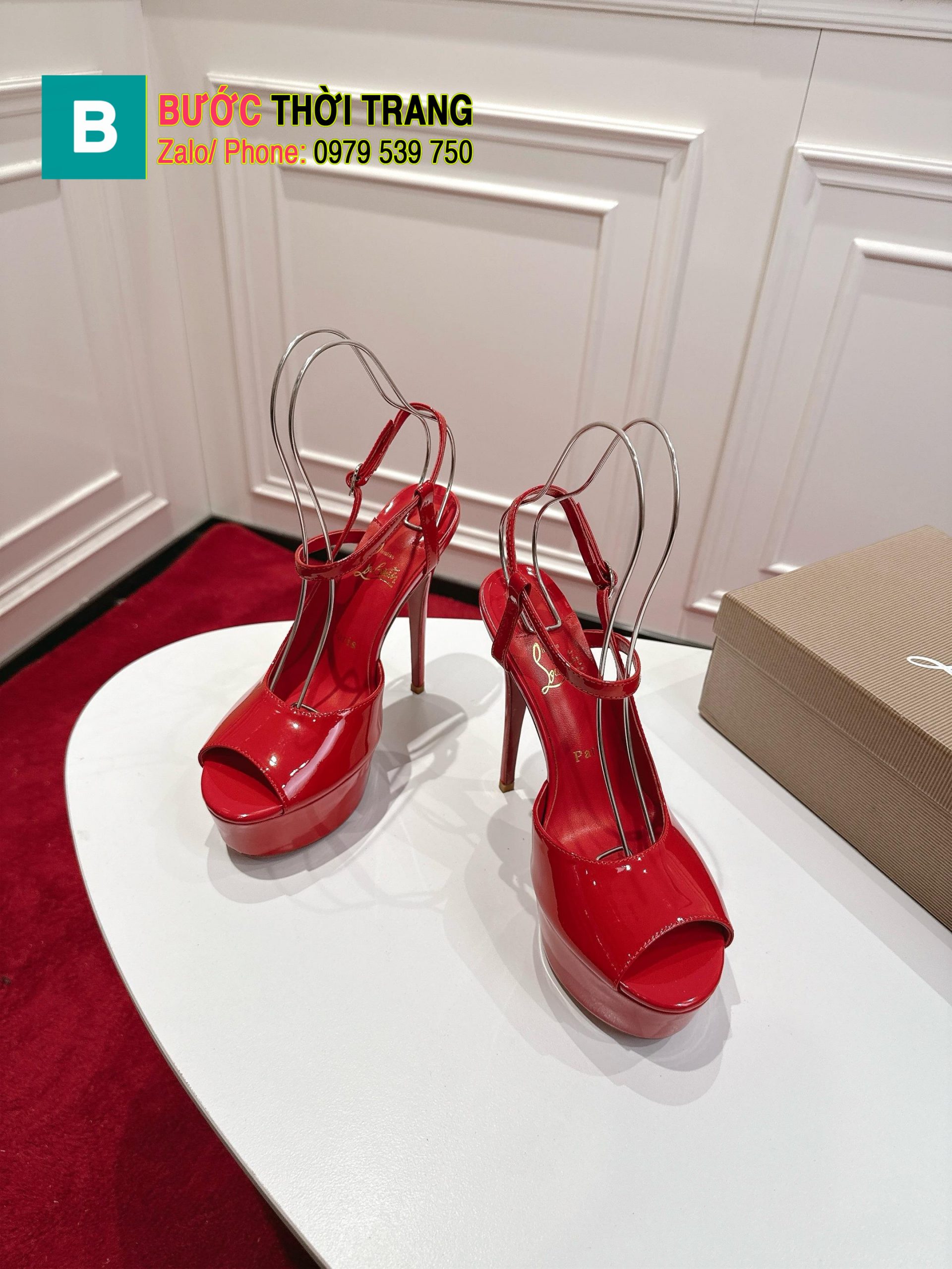 Giày cao gót Christian Louboutin cao cấp màu đỏ tươi da bóng mượt gót nhỏ cao 15 cm