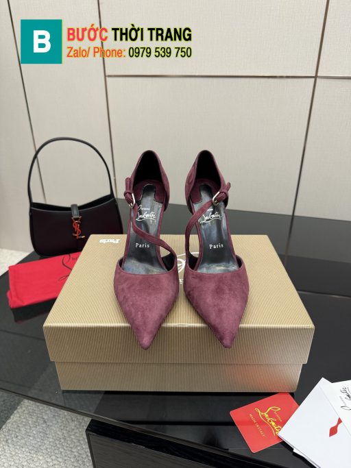 Giày cao gót Christian Louboutin cao cấp màu tím trầm da lộn đế đỏ bắt mắt