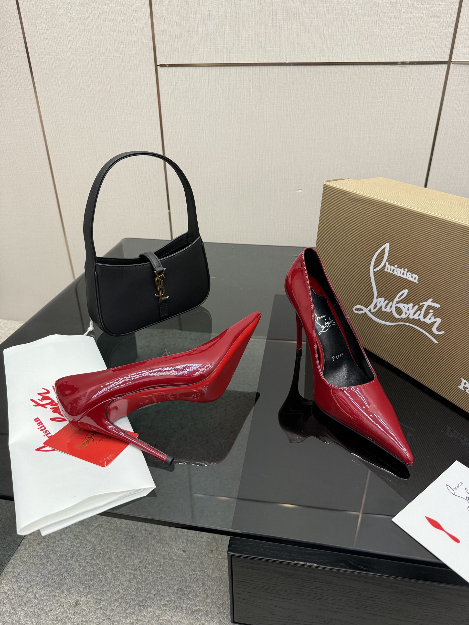 Giày cao gót Christian Louboutin màu đỏ đô da bóng gót đỏ đế cao 10,5 cm