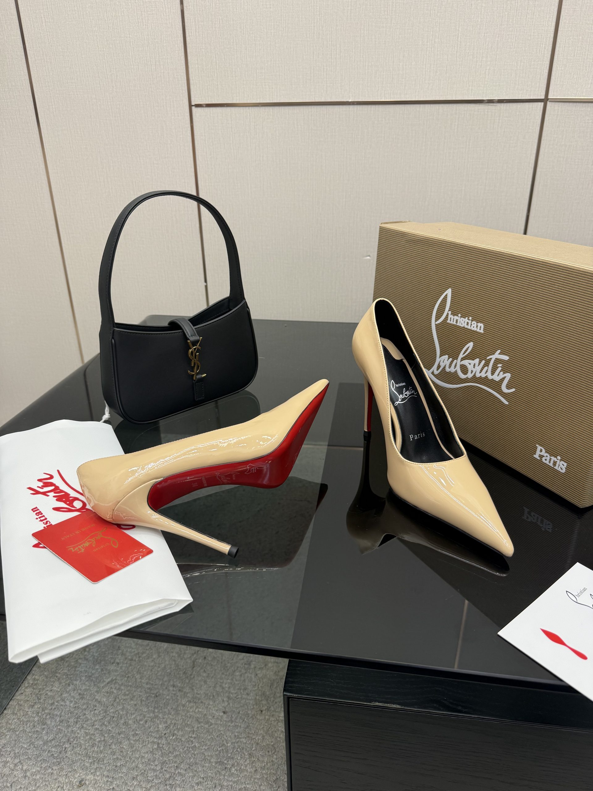 Giày cao gót Christian Louboutin màu nude da bóng gót đỏ đế cao 10,5 cm
