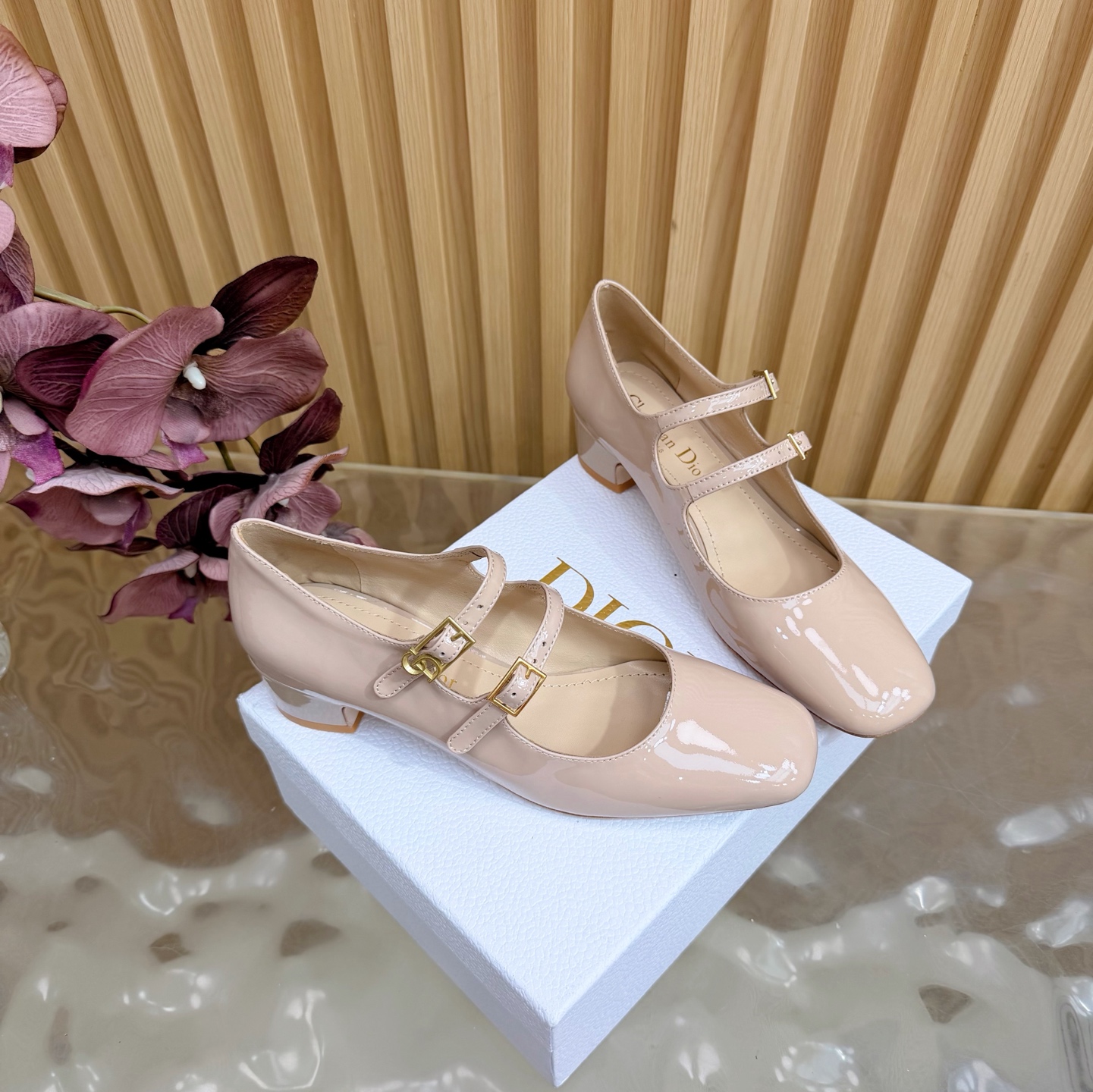 Giày cao gót DIOR 2 quai màu nude da bóng thanh lịch