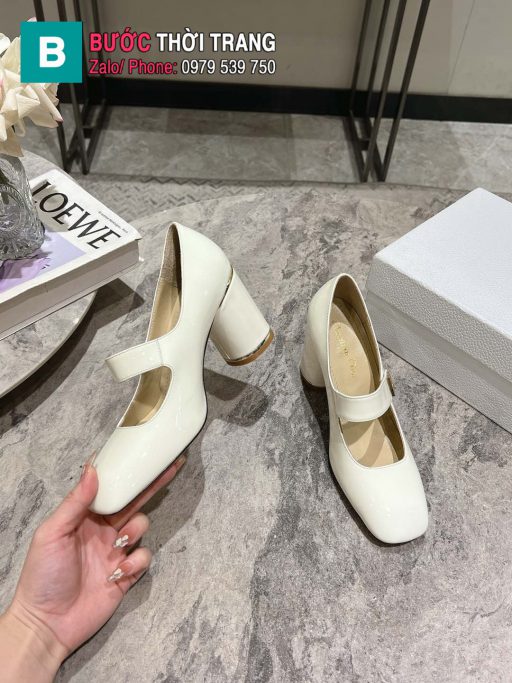 Giày cao gót Dior Mary Jane màu trắng mũi vuông da bóng cao 3.5cm và 8.5cm