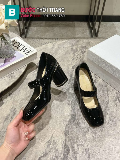 Giày cao gót Dior Mary Jane mũi vuông màu đen da bóng cao 3.5cm và 8.5cm