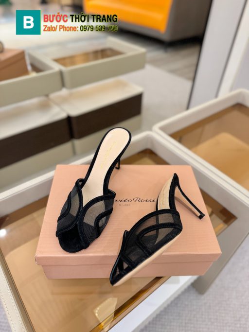 Giày cao gót Gianvito rossi màu đen chất liệu lưới thoáng mát sang trọng đế cao 8,5cm Hàng order 10-15 ngày (Cọc trước 500K)