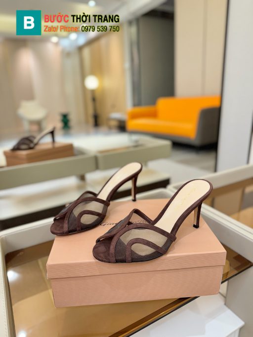 Giày cao gót Gianvito rossi màu nâu chất liệu lưới thoáng mát sang trọng đế cao 8,5cm