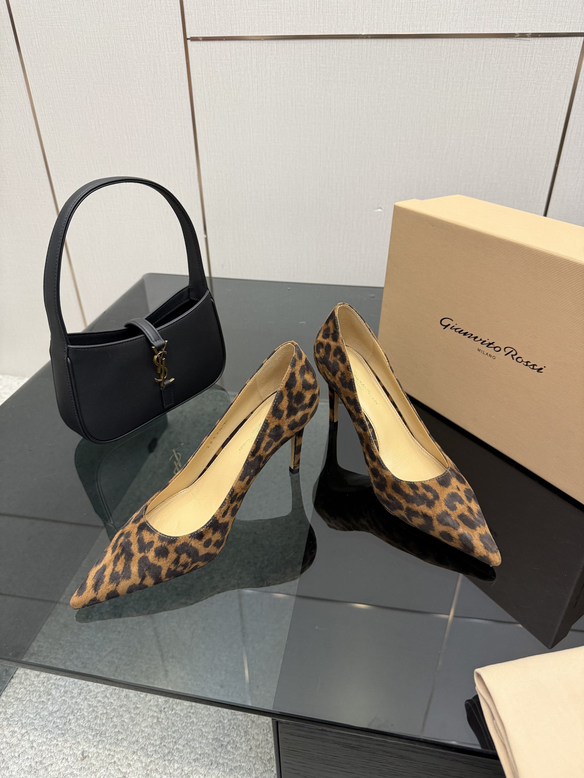 Giày cao gót Gianvito Rossi màu nâu họa tiết đốm da lộn cao cấp đế cao 8,5 cm