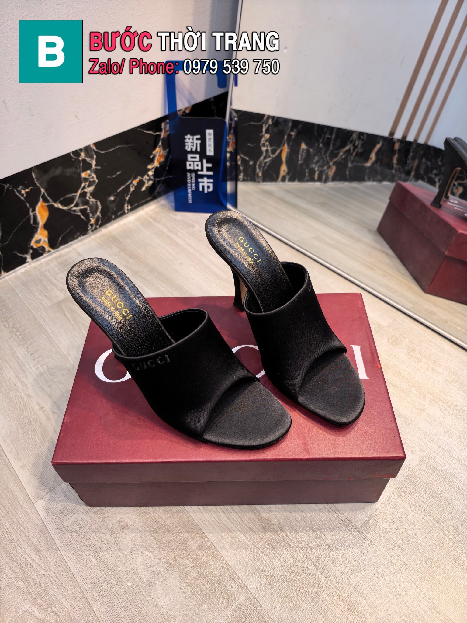 Giày cao gót GUCCI nữ màu đen đế 10,5cm được làm từ lụa cao cấp