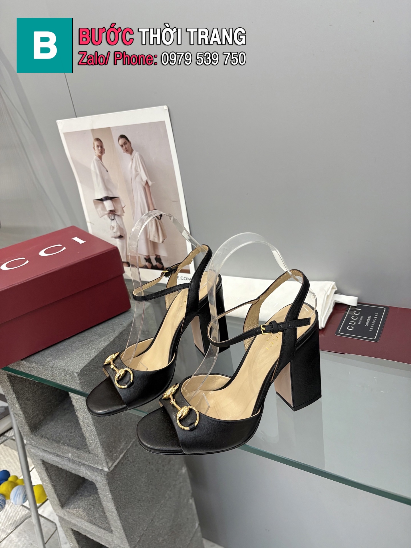 Giày cao gót GUCCI nữ màu đen phong cách sandal cao cấp đế cao 6.5 cm và 9.5cm