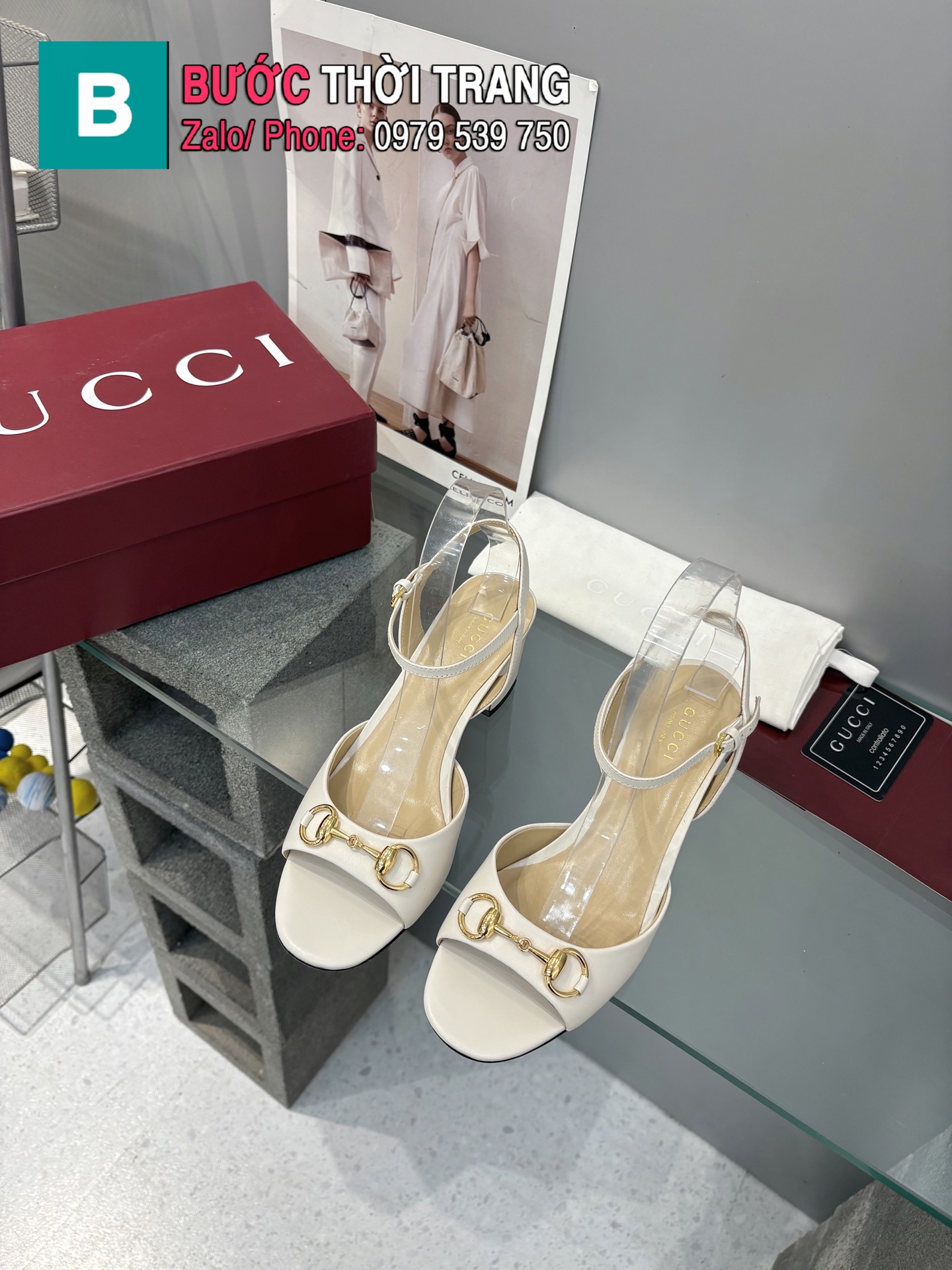 Giày cao gót GUCCI nữ màu trắng ngà phong cách sandal cao cấp đế cao 6.5 cm và 9.5cm