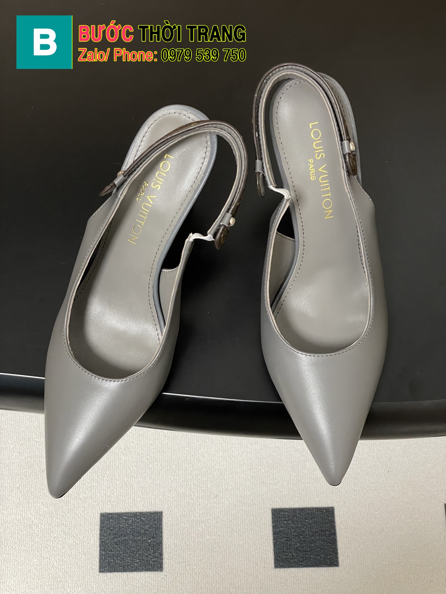 Giày cao gót LV 9 cm màu ghi chất da bò rất đẹp, mũi nhọn nữ tính