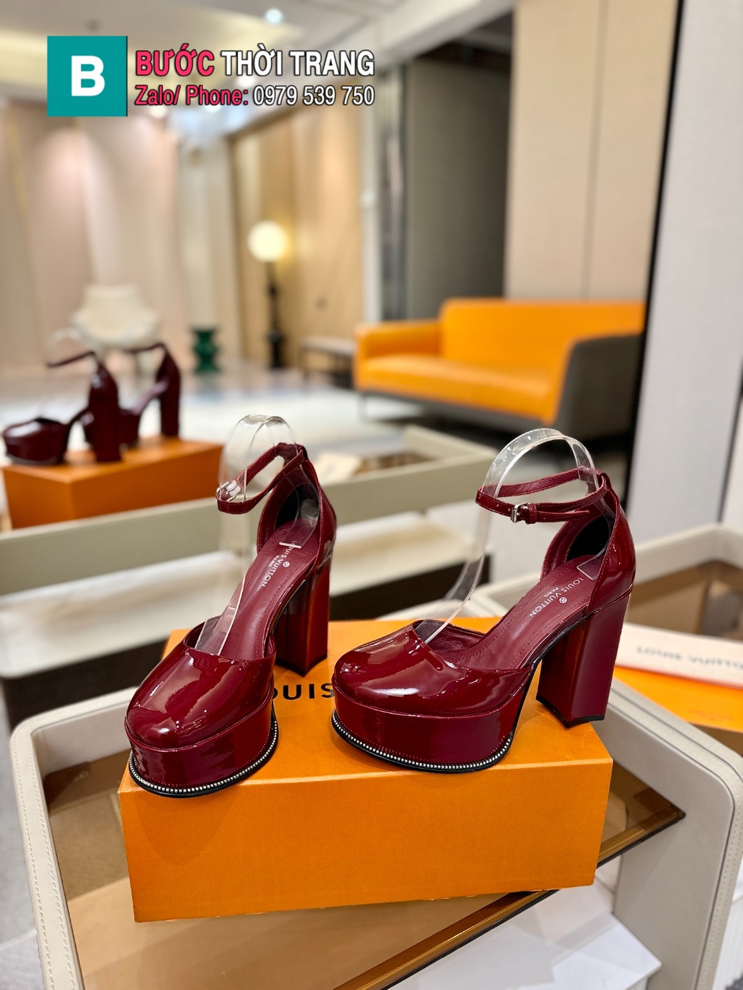 Giày cao gót LV mũi tròn màu đỏ đô da bóng sang trọng đế 12cm