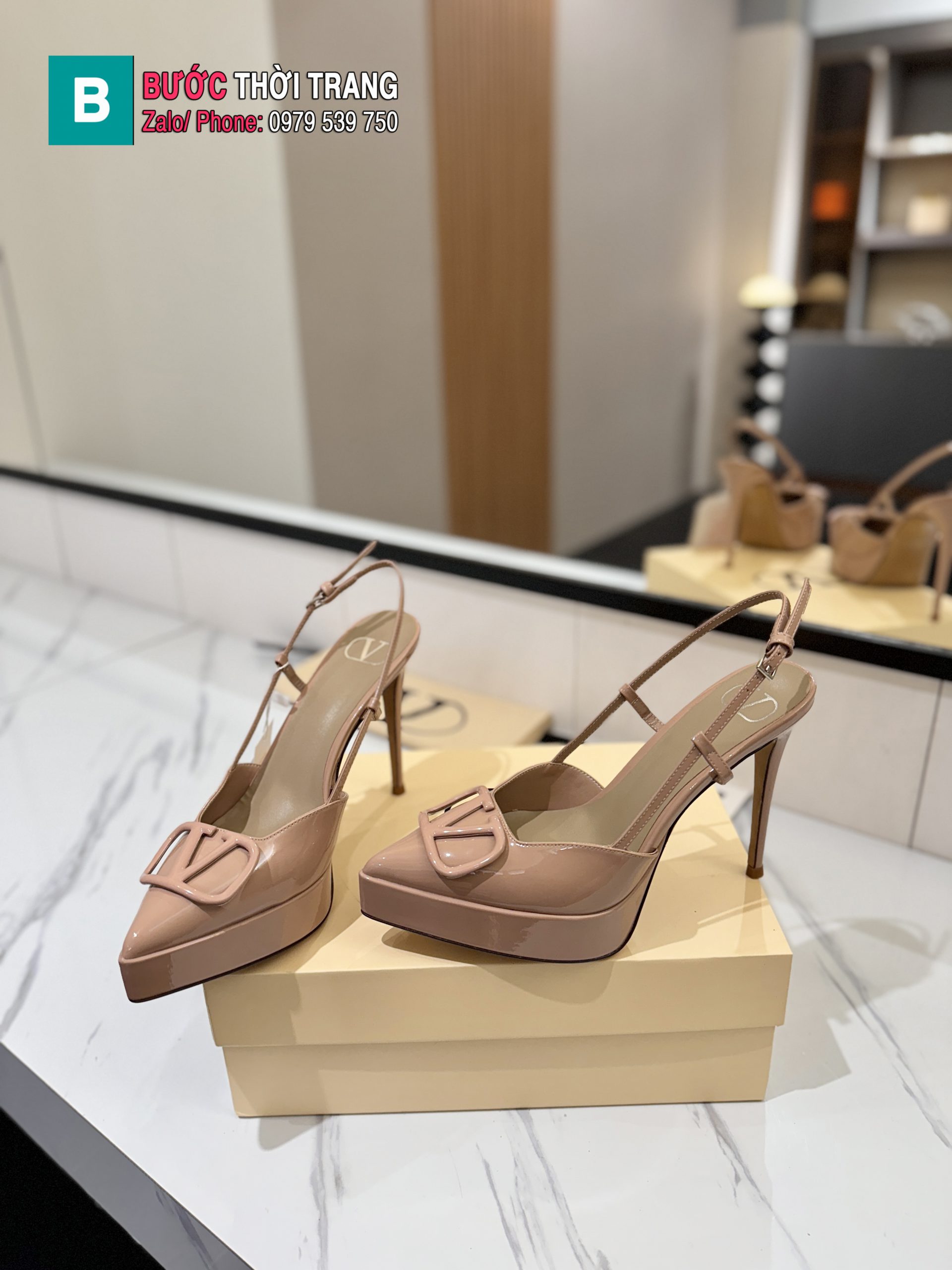 Thiết kế cao gót mũi nhọn với khóa chữ V biểu tượng, form dáng ôm chân giúp đôi chân trông thon gọn và thanh thoát hơn khi mang. Dù thuộc kiểu “siêu cao gót”, nhưng cực kỳ dễ mang – không đau chân, không mỏi khi di chuyển, giúp nàng tự tin sải bước suốt ngày dài.
