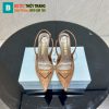 Giày cao gót Prada màu đỏ nhung chất da lộn bền bỉ logo Prada hình tam giác nổi bật gót cao 7,5cm