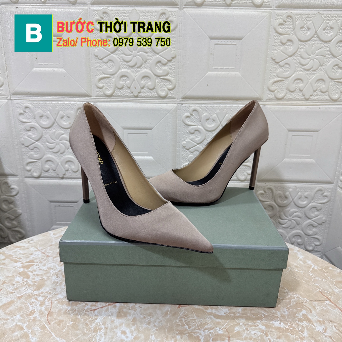 Giày cao gót TOM FORD màu xám đế cao 10,5cm tôn dáng được làm từ lụa cao cấp mềm mại