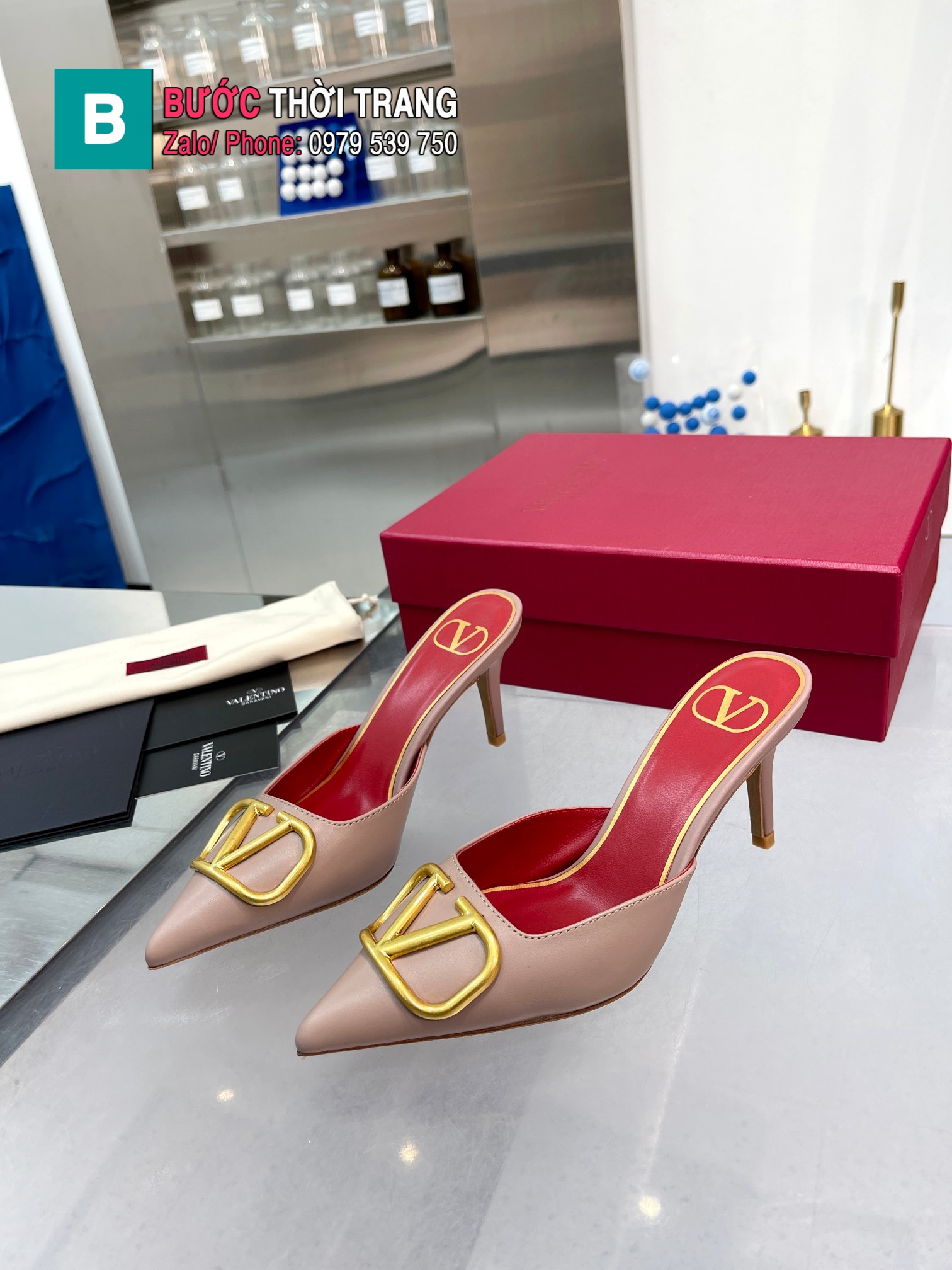Giày cao gót VALENTINO màu be cao cấp đế đỏ da bò mềm mại đế cao 7,5cm