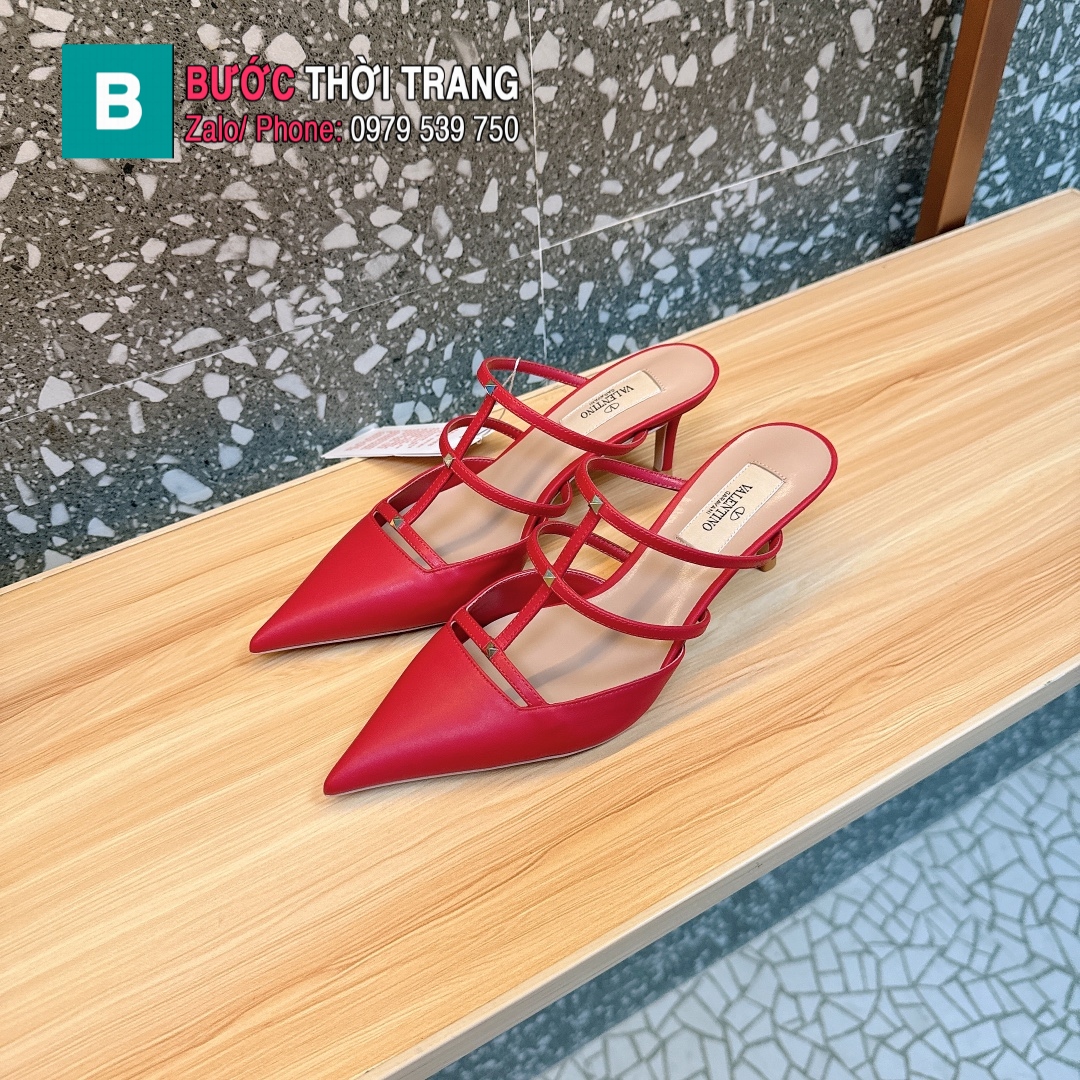 Giày cao gót VALENTINO màu đỏ mũi nhọn quai vòng đặc sắc đế cao 6.5cm