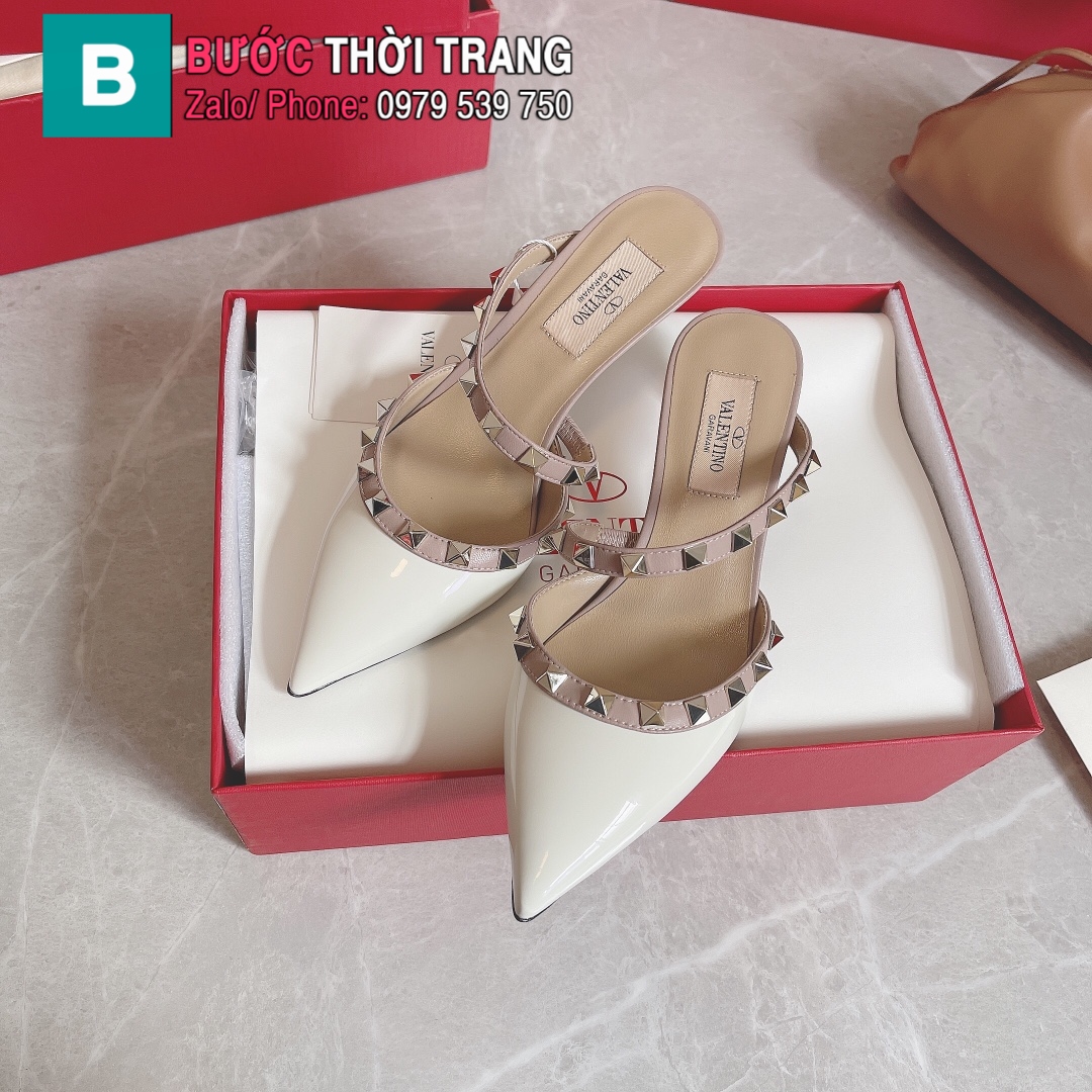 Giày cao gót VALENTINO màu trắng mũi nhọn cao cấp họa tiết đinh tán cá tính đế cao 6,5cm và 9,5cm