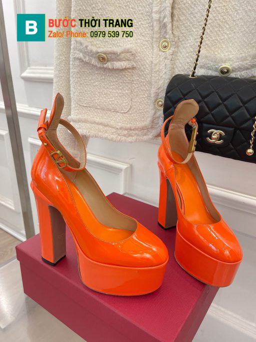 Giày cao gót Valentino siêu cấp màu cam cao 15,5cm mũi bo tròn, from chuẩn đẹp